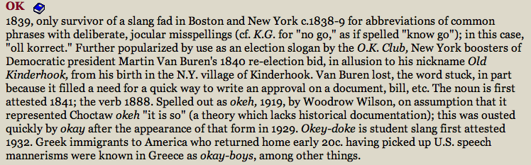 Today is being declared as OK Day by the author of a new book about the word OK. The word OK was first published on March 23, 1839. It is a fanciful acronym for the intentionally misspelled ‘oll korrect.’ Really. You can learn about OK Day suggested activities at the Facebook page.